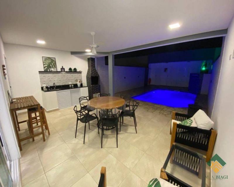 O imóvel tem 3 quartos, sendo 3 suítes,  possui 5 banheiros e 5 vagas de garagem.