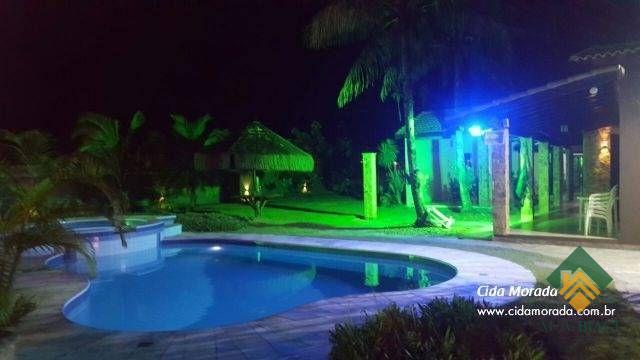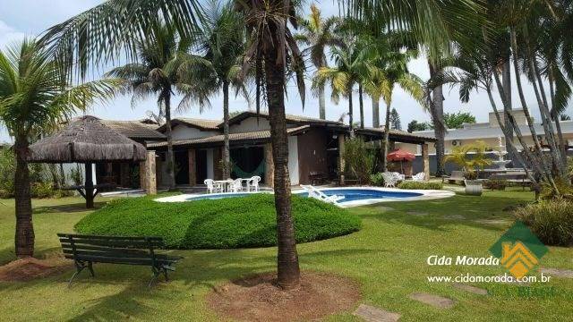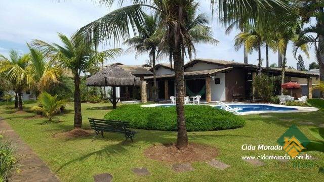 Esse imóvel conta com uma área total ampla, um jardim exuberante com quiosque de sapê, uma piscina incrível e área gourmet completa.
