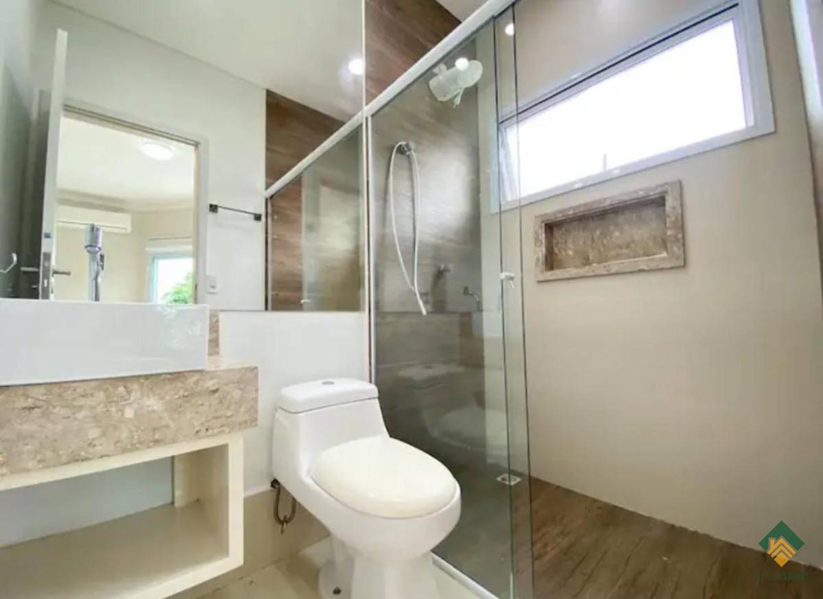 O imóvel tem 4 quartos, sendo 4 suítes, possui 5 banheiros, 1 sala e 2 vagas de garagem.
